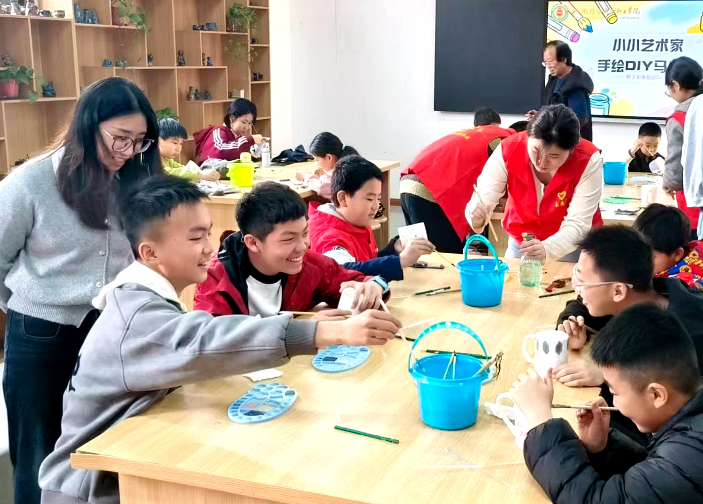 本次公益托管紧扣“五育并举”育人理念,深度融合美育、科普、红色教育与素质拓展,依托学院省级技能大师陶艺工作室、省级科普基地星青年科创实训馆等优质资源,为孩子们打造多元特色课堂。在专业教师与星青年志愿者的指导下,孩子们体验陶艺制作、机器人互动、党史学习等活动,同时参与书画创作、武术训练、球类运动及作业辅导,动静结合、劳逸结合,在沉浸式体验中收获知识与快乐,实现德智体美劳全面提升。活动落幕之际,孩子们展示了三天来的陶艺、绘画、书法等作品,分享假期收获,定格温暖瞬间。